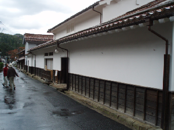 龍源寺間歩は銀を採掘するために掘られたトンネルであり、長さは600mにも及ぶが 公開されているのは157mである。背丈スレスレの坑道を歩く。坑道からはさらに 細い坑道が横に縦にのびている。壁の無数のノミ跡が生々しい。 157m地点からの新坑道には「石見銀山絵巻」が 掲示されており採掘の様子がわかる。採掘は湧水、酸欠、粉塵との戦いである。 龍源寺間歩は1715年に開発され228年続いたが1943年山は閉じられている。 龍源寺間歩を出て下り坂を町並み地区へ向う。ここには武家、商家、寺院などが 1kmくらいの間に集まっている。 大森代官所跡は「石見銀山資料館」となっており、石見銀山の歴史、鉱山資料が展示されている。 |