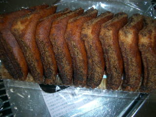 皮を開くと、米は飴色にとけて、独特の灰汁の強い味で、輪切りにして、黒砂糖、白砂糖、きな粉等につけて食べます。