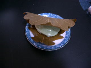 葉の芳香が、団子に移って、とてもよい味となります。